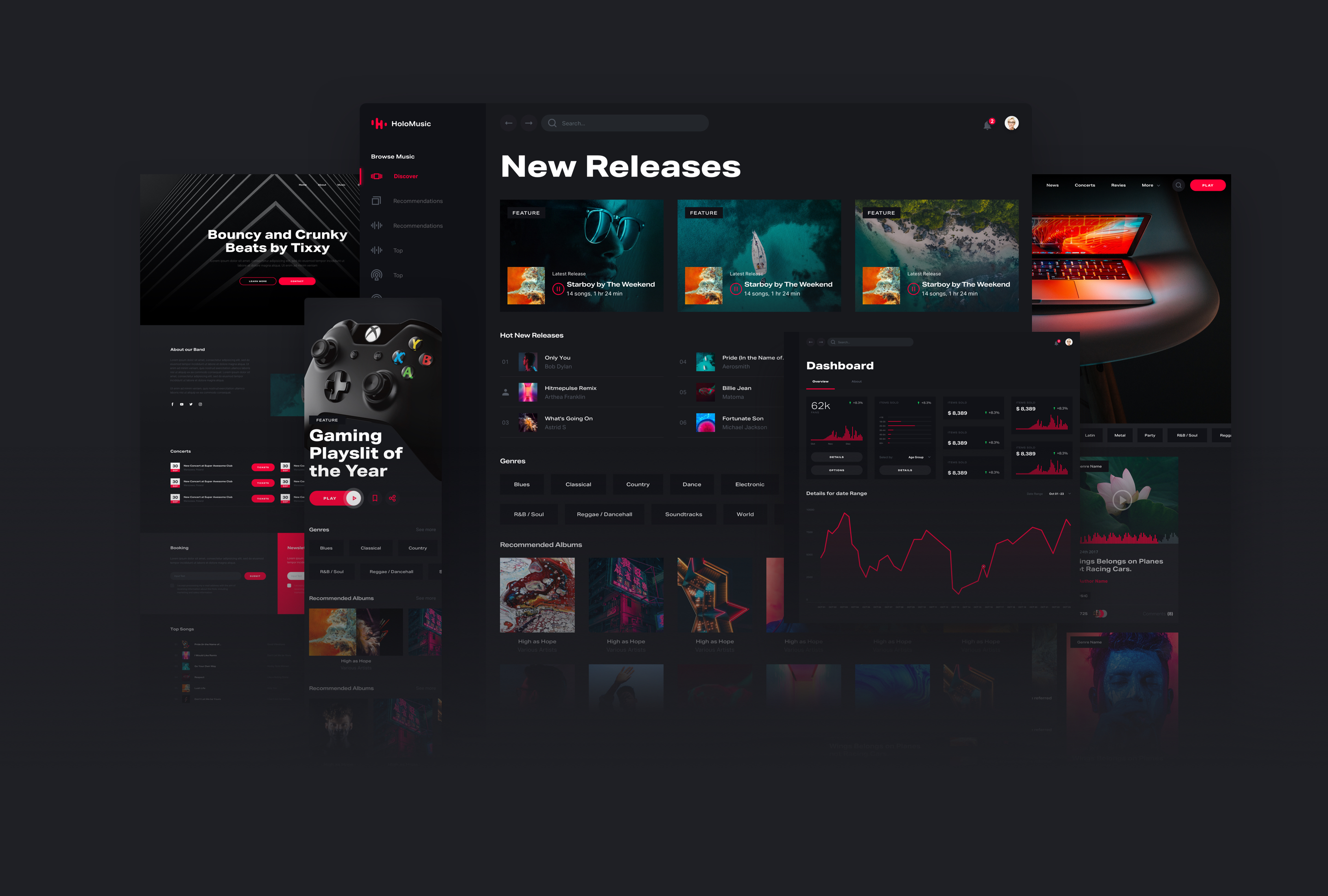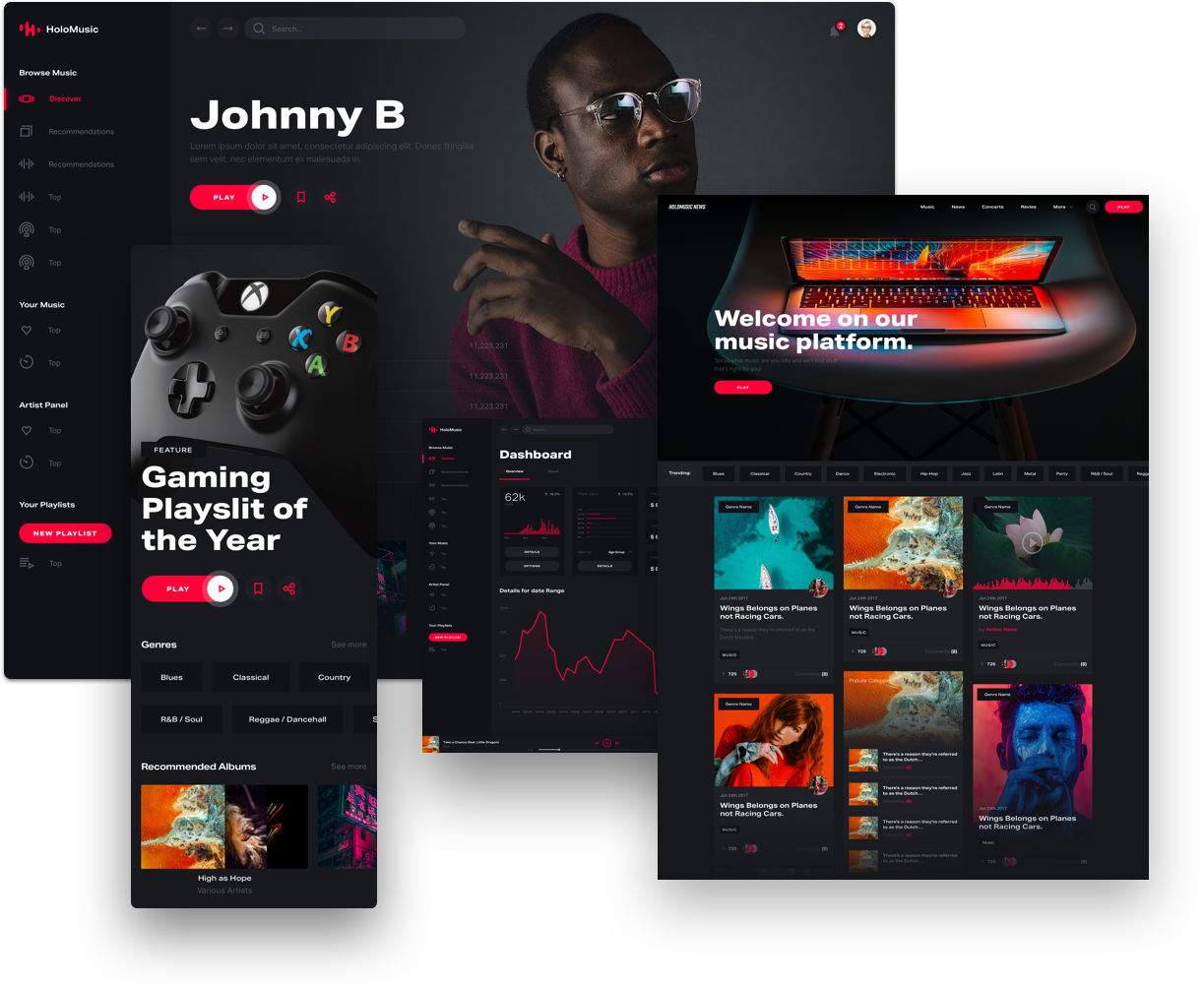 I wanted Holo Music to be universal, but there’s no doubt that its core is about music. But no matter if you're going to build promo website for your service, or add additional functionalities.